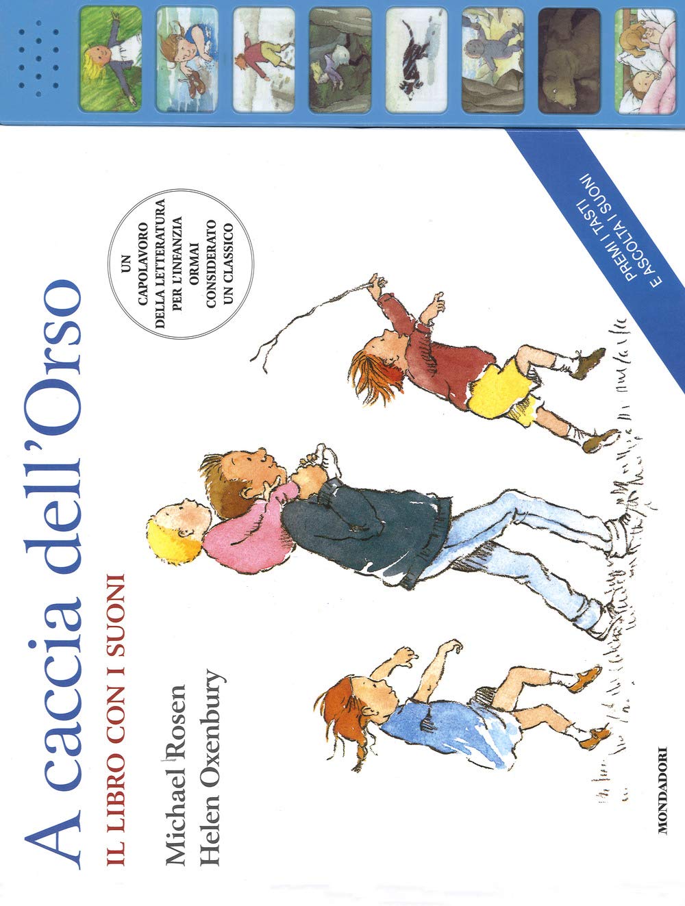 Una famiglia parte alla ricerca dell’orso ma, dopo aver attraversato un campo di erba frusciante (svish svush!), un fiume freddo e fondo (splash splosh!), una pozza di fango limaccioso (squelch squalch!), un bosco buio e fitto (scric scroc!) e una tempesta di neve che fischia (fìuuuu huuuuuu!), alla fine… sarà l’orso a trovare loro. Età di lettura: da 3 anni.