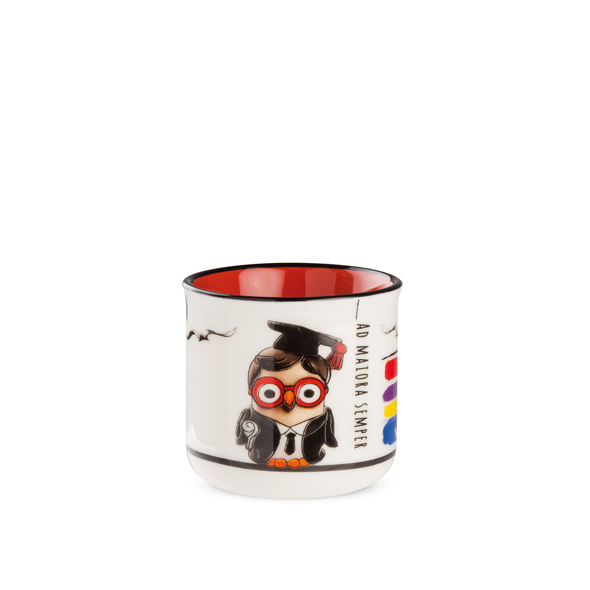 Bicchierino in porcellana con gufetto laureato. Simpatica idea regalo o bomboniera per laurea.